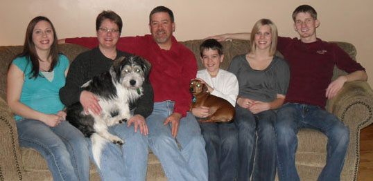 Left to right: Lanie, Tonya, Mark, Noah, Megan and Zach, with the dogs, Charlie and Tucker. |
